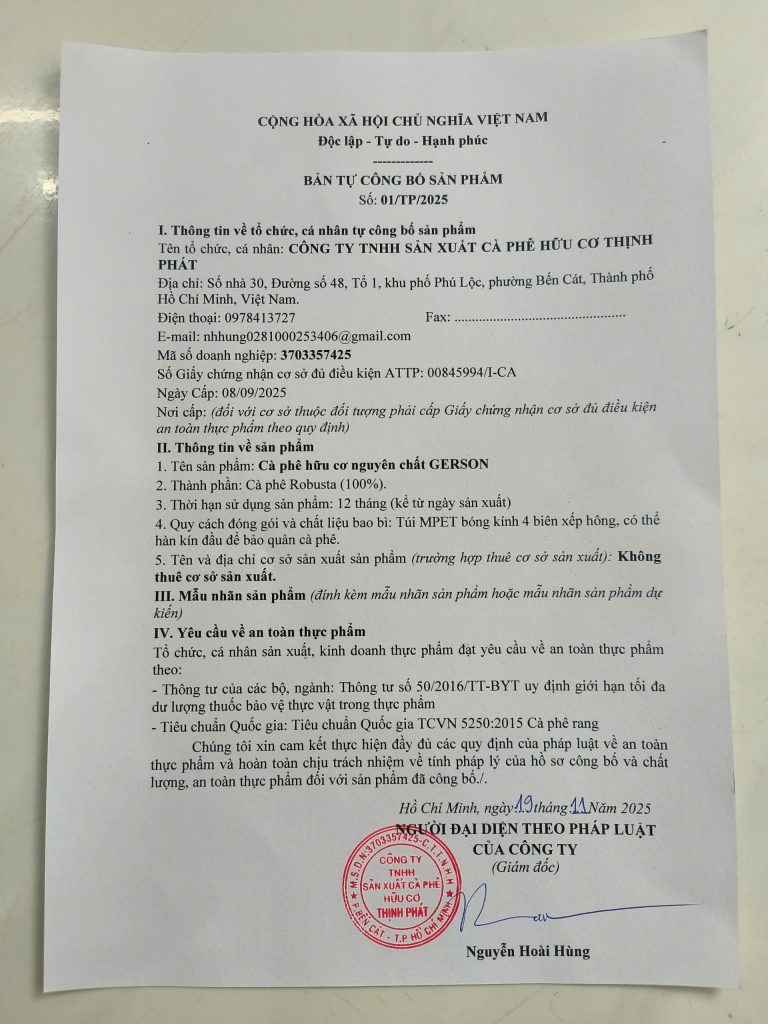Thịnh Phát Gerson là thương hiệu tiên phong tại Việt Nam chuyên cung cấp cà phê hữu cơ dùng cho liệu trình thải độc gan & đại tràng (coffee enema) theo phương pháp Gerson nổi tiếng thế giới.